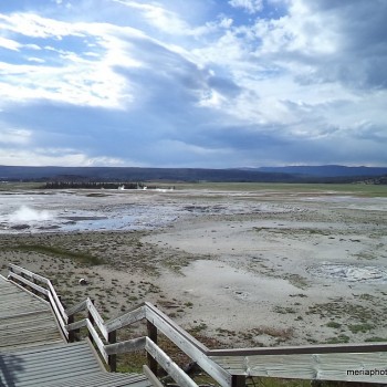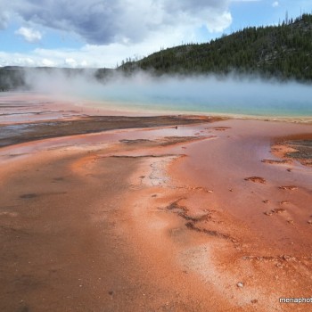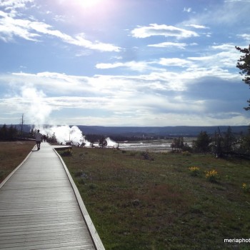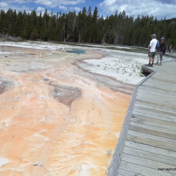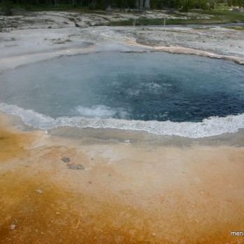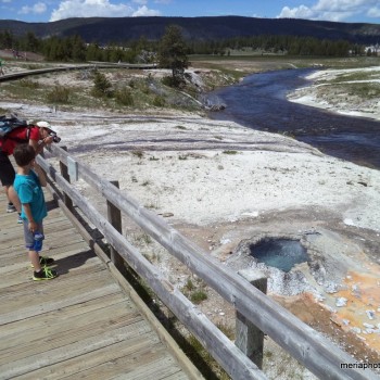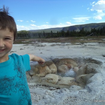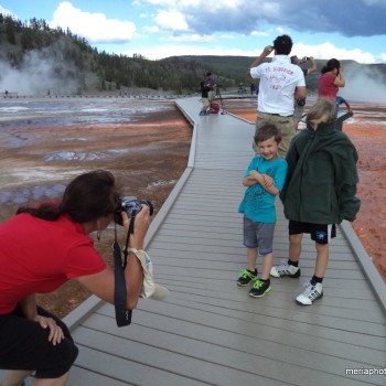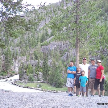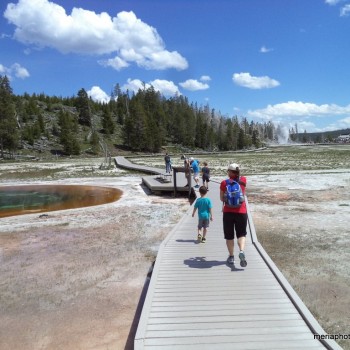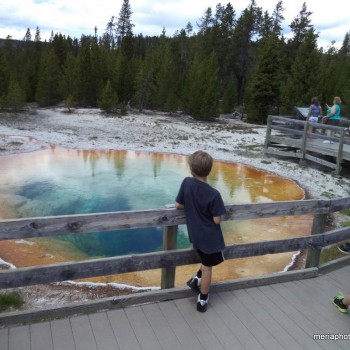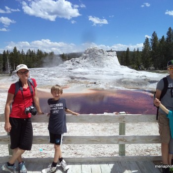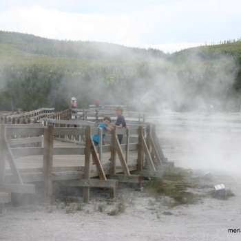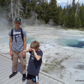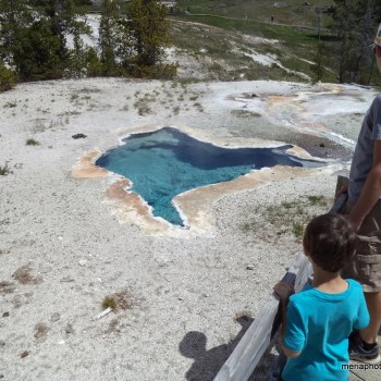 I think I was the only one in this family, but I could have done days touring geysers and hot springs – they were phenomenal. We started out at Old Faithful. There’s two lodges there, places to eat and to shop, a museum of sorts, some other shops centrally located, and then there is Old Faithful and some trails to walk to see the other geysers and hot springs in that area. The trails are actually a boardwalk that you are instructed to stay on. You aren’t allowed to step off the boardwalks to get near the geysers or springs since they say the earth around them is extremely fragile, and if you fall through you’d get scalded – I believe it! The hot springs sure are tempting though – they are sooo beautiful!!!
