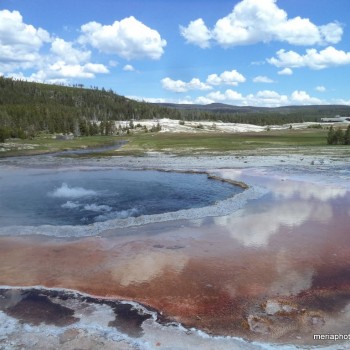 We started the trail at a few small springs and then sat and waited for Old Faithful. It erupts every 92 minutes, five or take 10. It was about 11 minutes late, but it was really cool. There were so many to see. Some looked just like others, and some were really unique. The waters were crystal clear, but the colors were magnificent. I was looking forward to seeing one called “Morning Glory” (last pic of this group).
