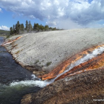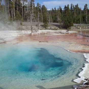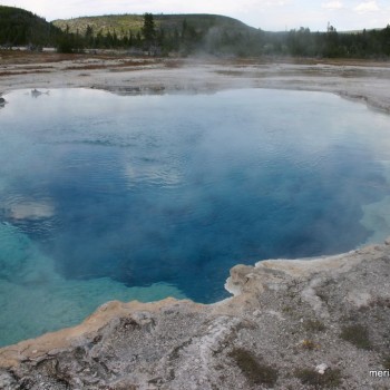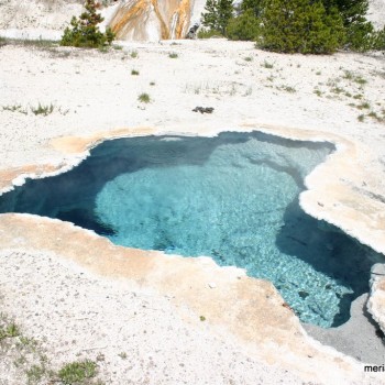 On the way through the park towards our campsite, we stopped at a bunch more sites. A couple that we met in Devil’s Tower suggested stopping at “Biscuit Bay” to see the springs there so that was our first stop. So worth it – glad we listened! Steve was brave enough to check one of the spring runoffs (and then we all had to confirm it) that yes, the water coming from the springs is in fact scalding hot! Our favorite was the turquoise pool.