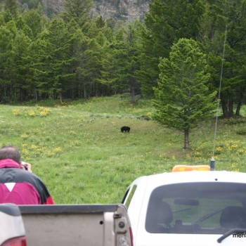 As we drove back, there was a grizzly and a cub that caused a major traffic jam but I didn’t get a pic of them. But later on, we did see a black bear and a pair of Elk…