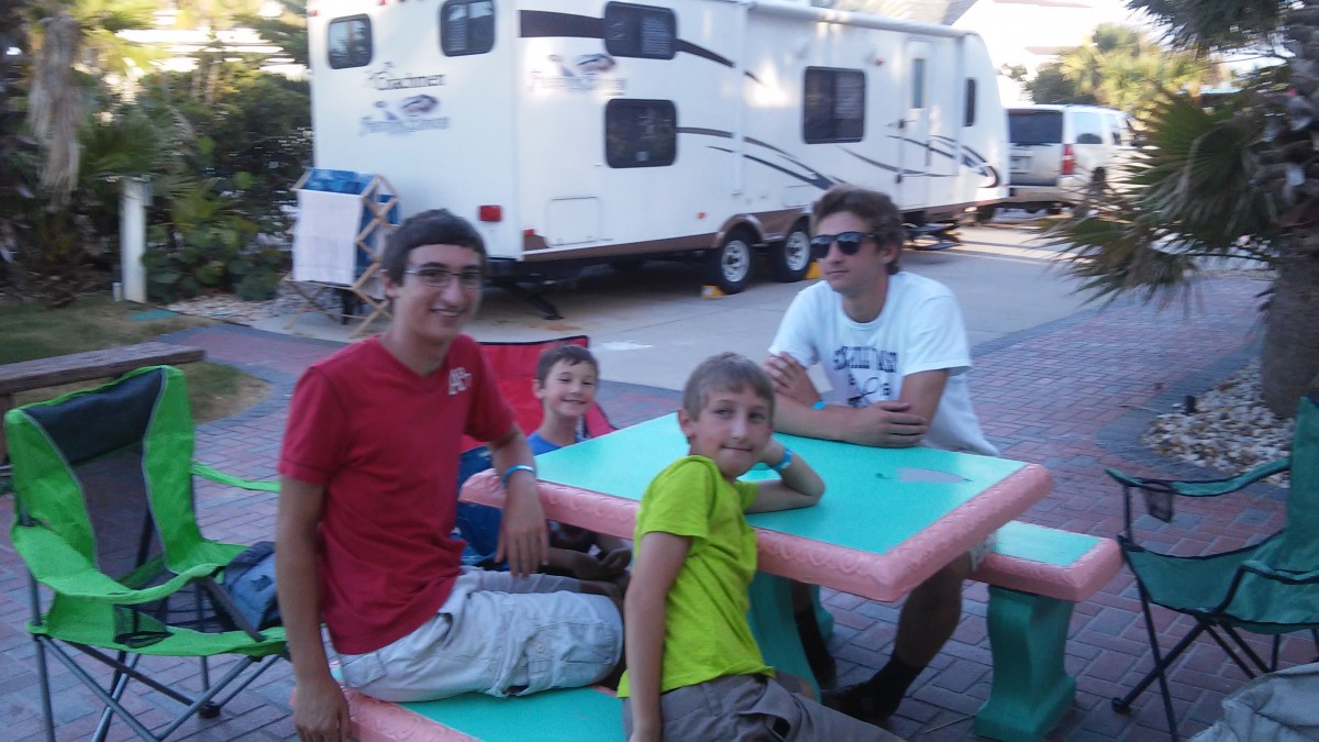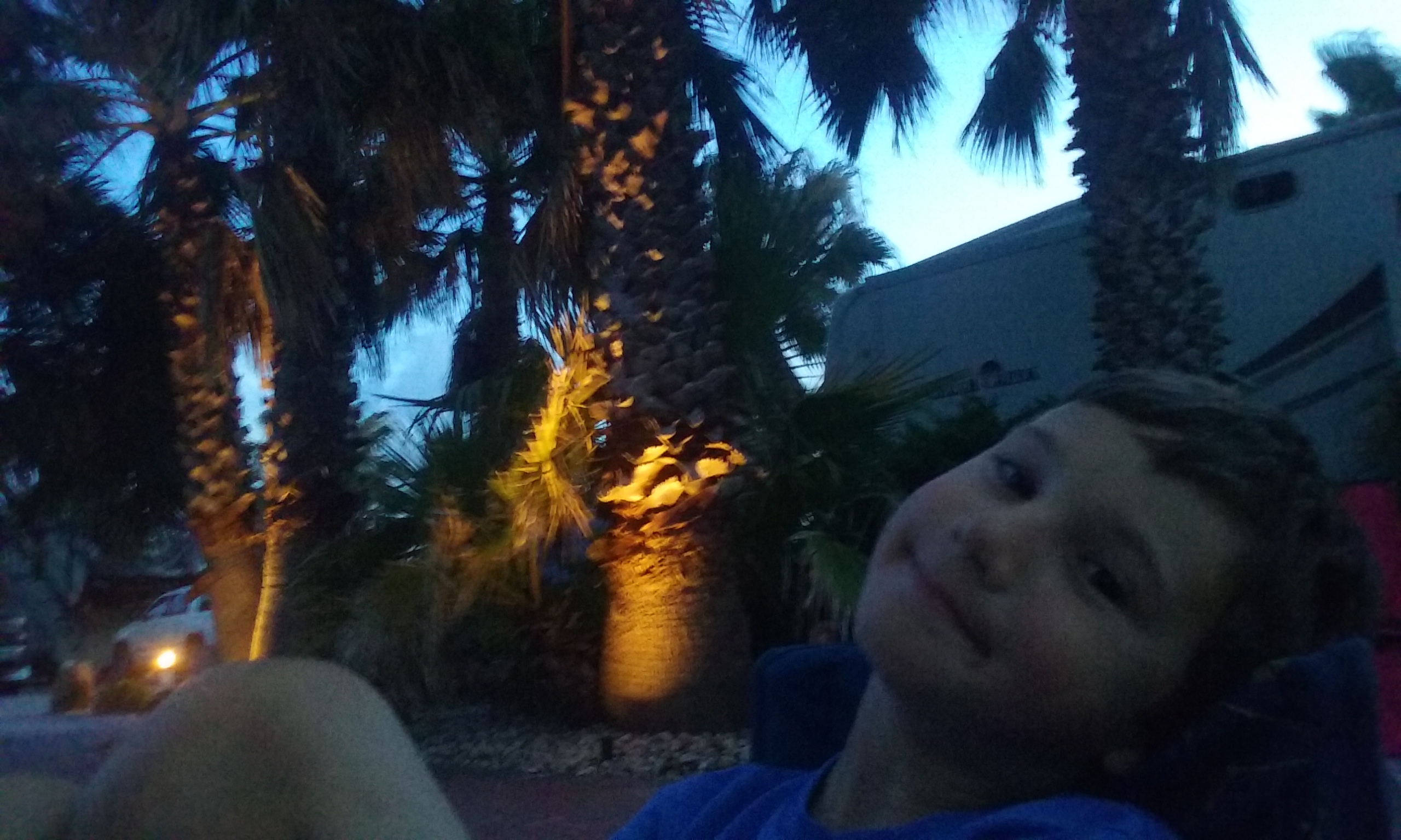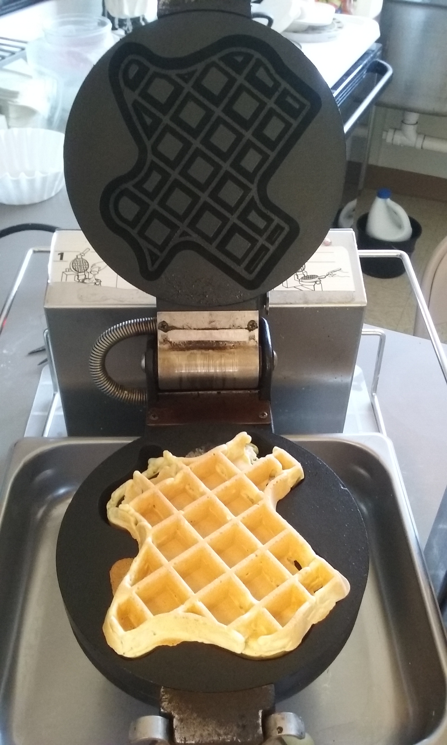 Our first stop in Texas was in a town called Beaumont. It was a nice campground and reasonably priced. Campsites were a little close together but the place was pretty clean.  We spent a little time in the pool and walking around the campground.  They offered a breakfast in the morning, and we were all excited about that. The kids love cereal in the morning, though I always offer to cook, but we don’t have a waffle iron on-board, so Gabriel was psyched!   What better way to start your day in Texas than a Texas-shaped-waffle!