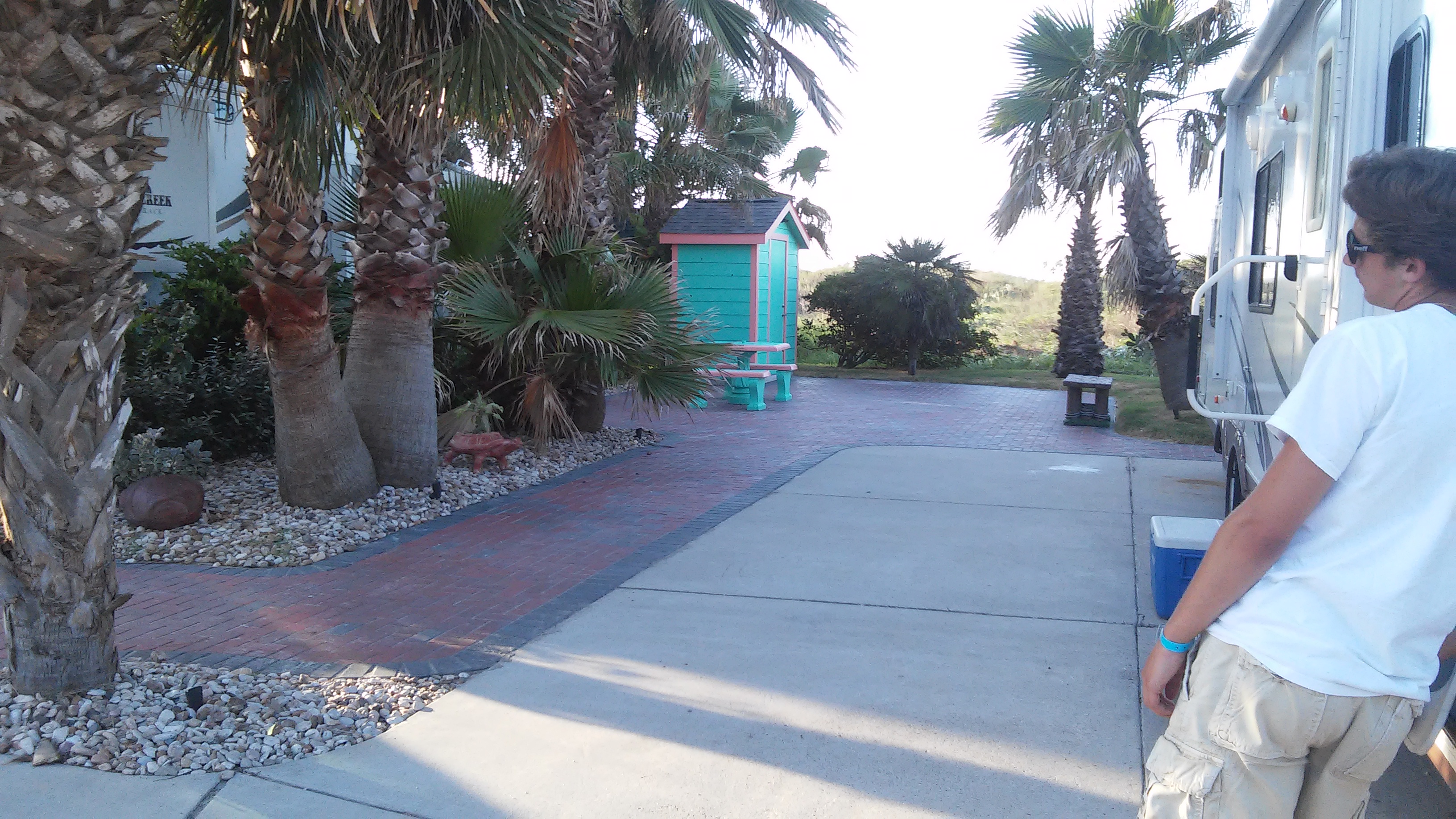 Check out time was 11:00, and probably we left there around 11:30.  A common theme this trip seems to be that it doesn’t matter how much time the GPS says it will take, we leave as late as we can regarding checkout, and we wind up two hours past whatever our ETA is. It’s not a big deal, just noteworthy, since we’ve been on vacation time ever since we left anyway.  Sometimes we book a site from about an hour away, and God has provided those for us every time, but there’s a few we called ahead for just in case. So since we were headed to a beach resort, Steve booked a place for us in Port Aransas but we needed to be there by 6:00.  We would be hustling since our GPS said ETA was 4:30.