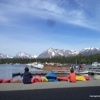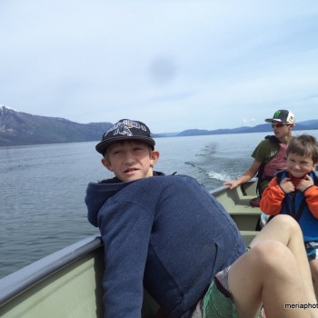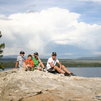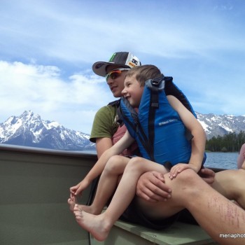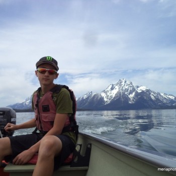 We started our day out renting a small motorboat and going out on the lake. The lake was calm and serene, and the reflection of the Tetons on the lake was postcard worthy even though it was a bit hazy. I wonder if the snow on the tops of the mountains doesn’t naturally keep a haze around it. We didn’t bring poles to fish, we just wanted to hang out on a boat and be on the lake. We drove around for about 2 hours. The boys took turns driving. If you know Christian, you know that he was the one who drove the craziest. We all had a nice time and were thankful to Steve for making this happen.