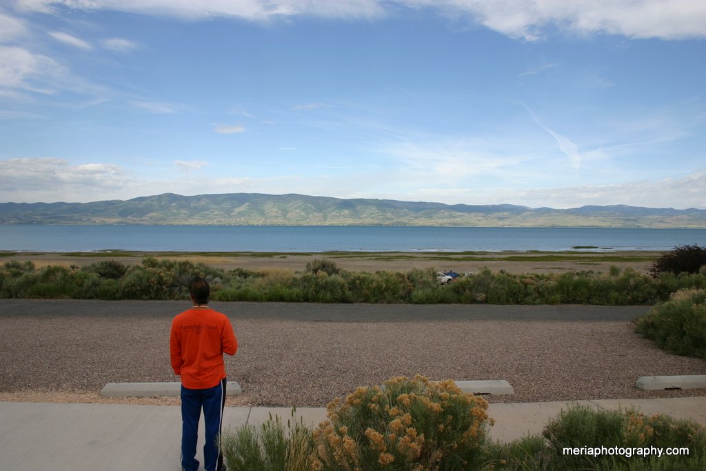 Steve’s parents let us borrow a book called “Off The Beaten Path”, describing places in the country that may not be so well known but might be worth a visit to. We used it a lot for the map of the entire country and the individual state ones that we visited as well. On our way from Grand Teton to our next planned stop in Salt Lake City, Utah, the book mentioned a state park named Bear Lake shared by Idaho and Utah. The park highlight was the turquoise lake nestled in the valley as a watersports and swimming paradise. We decided to give it a look.