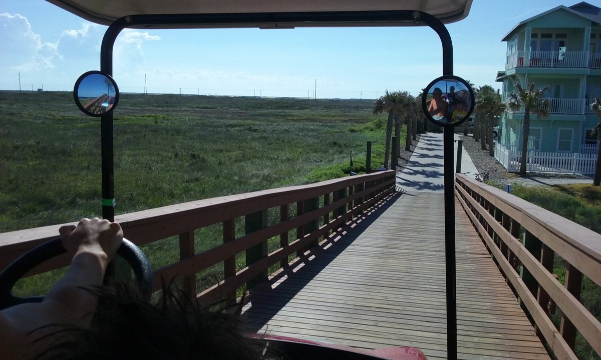 Back to our site to wait until 8:30. Everyone at this place had their own golf carts or rentals. It’s cool to have a golf cart to get around in any campsite, but the icing on the cake is when you can drive it on the beach and in town too. The only restriction was not to drive on the main road (50mph) just outside the resort, but you were allowed to drive the carts down the length of the beach 5 miles north to enter into town that way. So the rental was for 24 hours, and we…were…psyched! I walked to the office to pick it up that morning…