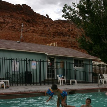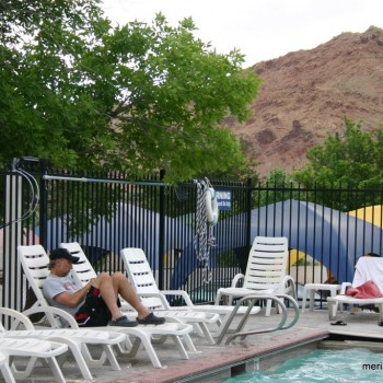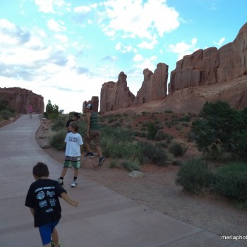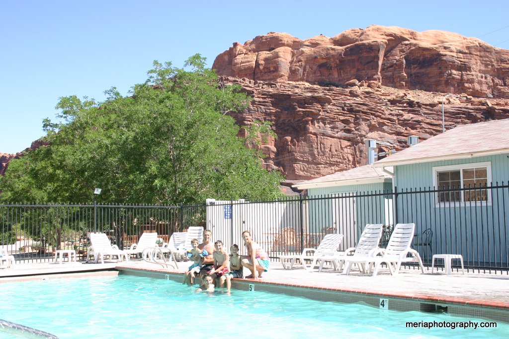 Arriving in Moab, the campground we were staying at was about 3 miles south of the entrance to Arches National Park but we felt like we were right there with the surrounding scenery. We set up camp and hit the pool. It was a pool/hot tub combo and the kids were loving it!
