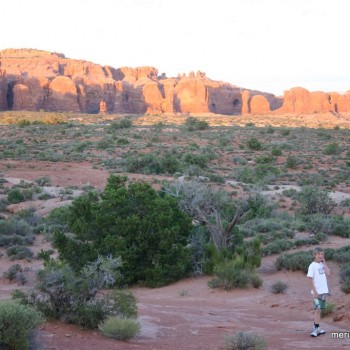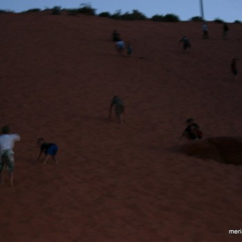 Dinner and then and then a run over to Arches to check it out at sunset. Seemed like the actual arches were hidden, but we saw what we could. The kids were too focused on the pool to enjoy any of this, so we didn’t make them suffer for too long. On the way out of the park, we stopped at a sand hill where lots of cars were parked. Kids and grown-ups were walking up the hill so they could run down it. The sand was red and soft as baby powder, and the hill was steep. Some people were even rolling down the hill just for the fun of it. Other than the pool at our campsite, this was a trip highlight for the kids.