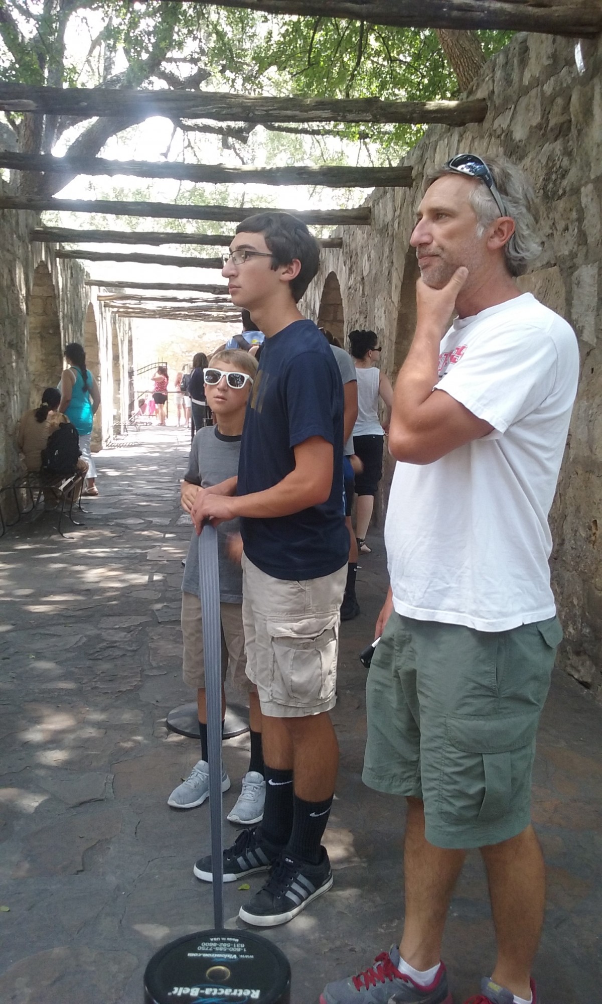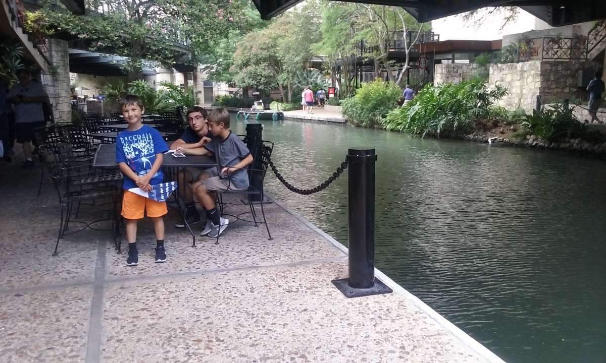 We were planning to leave the KOA and go back into San Antonio city to see The Alamo. We didnt want to park or leave the camper in the city, and fortunately the KOA had a solution – they offered a safe lot on the property where you could leave your trailer after checking out, then come back later for it for $10.00. Bonus! We headed into the city and found parking. Tyler and Christian both have their favorite sodas, Coke and Pepsi. Tyler was glad to see that Coke seemed more popular in town..