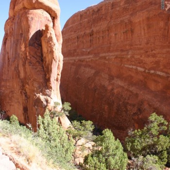 Steve and I got up early and let the kids sleep while we took a quick look at the rest of Arches. It was only an 18 mile loop through the park and we already did half of it the night before anyway. It turns out that the park is really about hiking it, so you can’t see much from your car. We chose a short trail to a the popular “Landscape Arch”. It was worth seeing, and even though it was hot, I wished we could have had a little more time there.