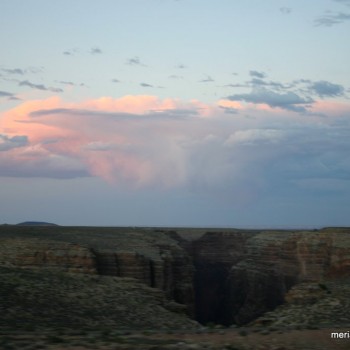 Back on the road to Grand Canyon. We arrived in Cameron, just outside of the Grand Canyon, around sunset. We began winding up through some mountains, passing many closed Indian roadside flea-market-type stands that sold turquoise and Indian-type souvenirs, and an occasional shack or two that even looked lived in. By the time we first saw part of the actual Grand Canyon there wasn’t much light in the sky. However, it was still breathtaking. You know that the canyon will be a big drop, and you’ve probably seen a billion pics of it over your lifetime, but when you actually see it it’s like you’ve never seen anything of it before.