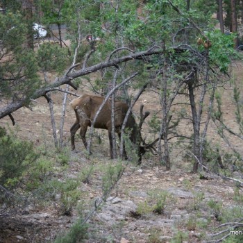 At the end of our sightseeing, we opted to walk back to our campsite rather than wait for a crowded bus, since it was towards the end of the day. Glad we did because we walked right past an Elk just helping himself to a tree branch snack.