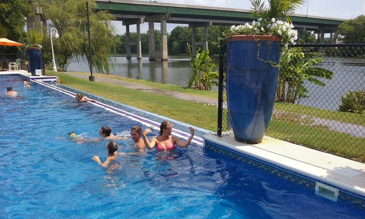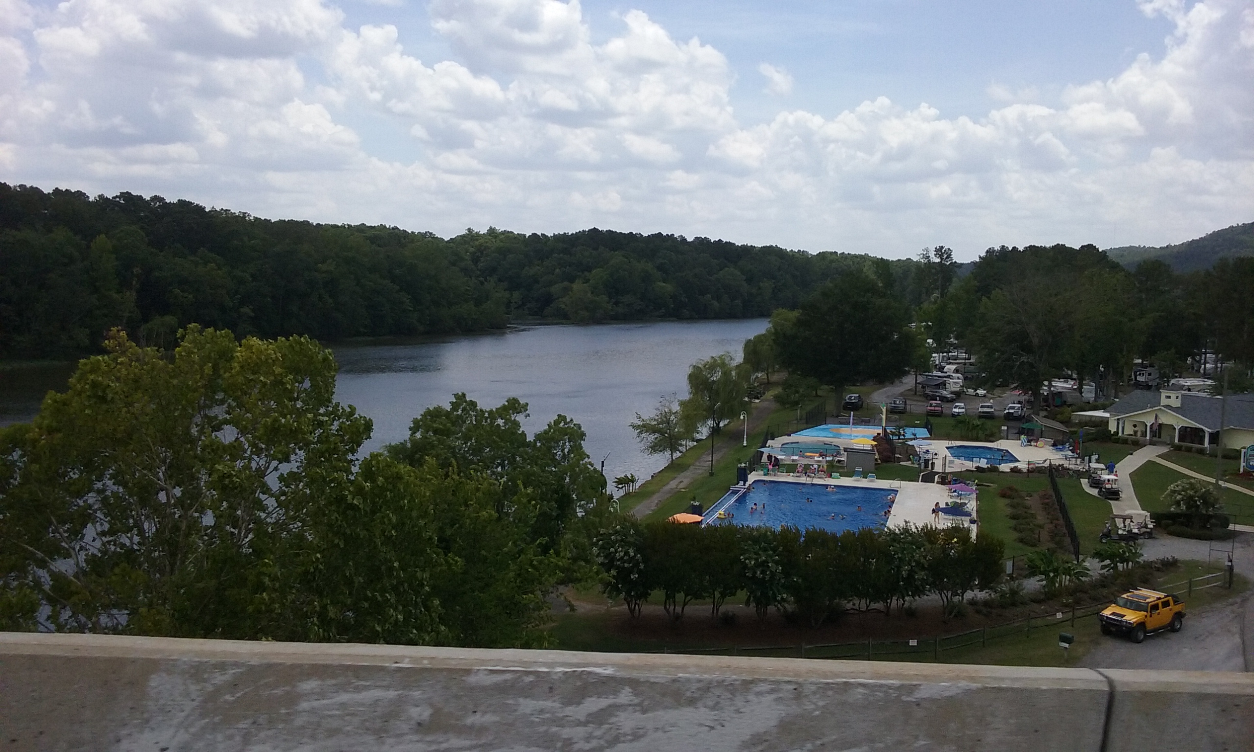 Since it was the 4th of July, we thought about staying here another night since we’d heard there was a pretty good display to be seen from the pool. But, “some” of the boys were getting tired of traveling and wanted to get home, so we obliged and got back on the road. I was able to take a shot of the campground pools as we drove past…