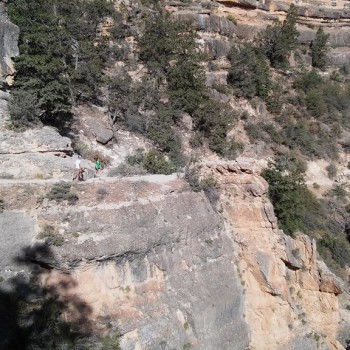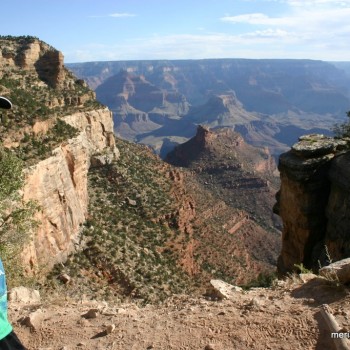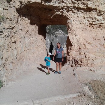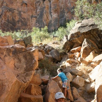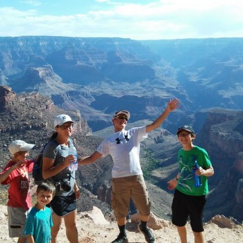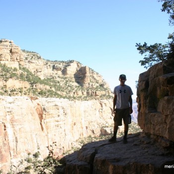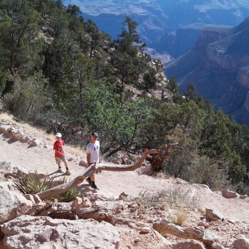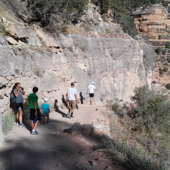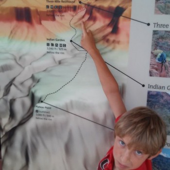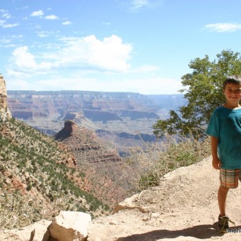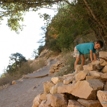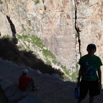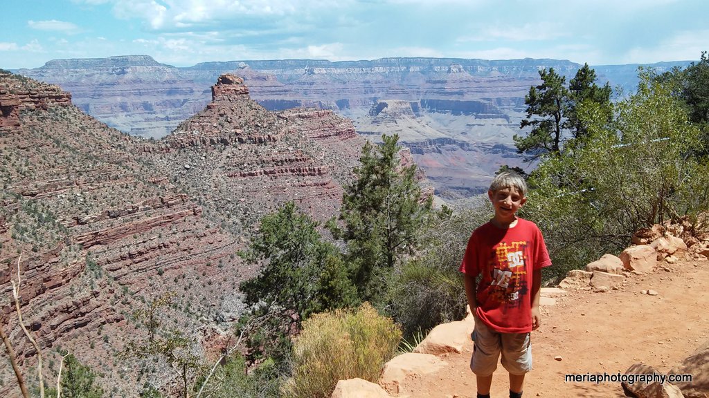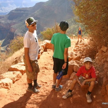 We reached the 1.5 mile trail rest stop where we could hit the rest rooms and refill our water containers. I kept thinking about the hike back up and that likely Gabriel was not going to be gung-ho about hiking back up too quickly, which always translates into me feeling bad for him and his little legs so I carry him. Oh, and did I mention that it was really really hot? Steve wanted to go on to do the full 3 mile hike down into the canyon and Christian too, so Morgan, Tyler, Gabriel and I headed back up the trail. I was a little worried about Christian but he’s a tough one. So the rest of us headed began the hike back up. I had to carry Gabriel on my back for the last 2/10ths of a mile or so as I expected, but we made it back ok.