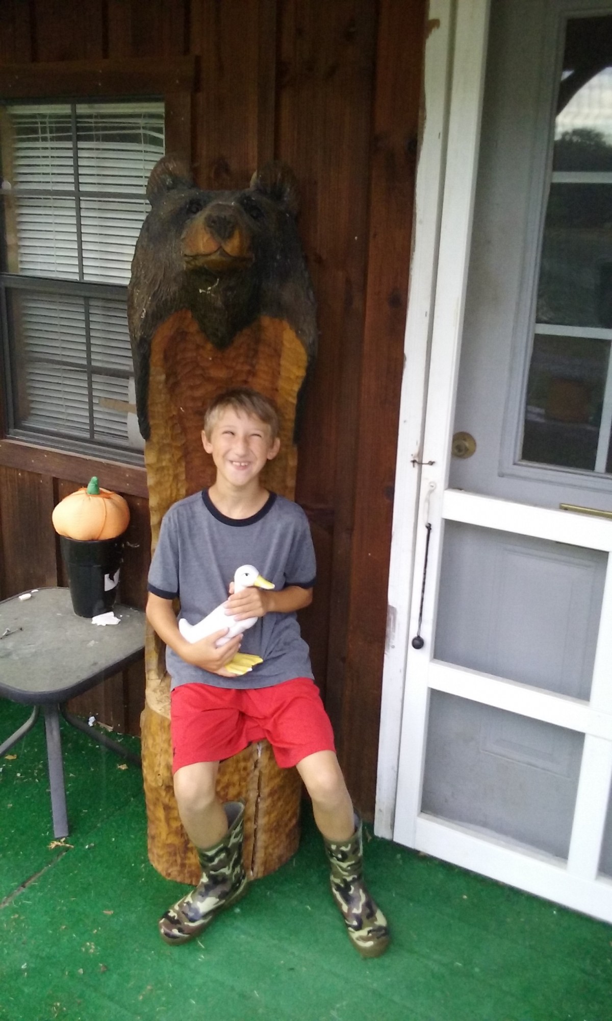 So the tour ended, and we were on our way to Baileyton RV Park in Baileyton for just an overnight, but saw this place on the way and decided to check it out first. We drove into the park, and a man with a long white beard and glasses in a red pickup truck swung around behind us and then towards us. He stopped us, and Steve asked if there were any sites available and how much. The man said “Yup, $30 bucks.” Steve asked if we should go back to the office to for info, but the man just put his hand out to Steve and said, “Got cash?” We gave him the money, then asked where we should park, and he said “wherever you want” and he drove off. Not the usual welcome, but never judge a book by it’s cover. The sites were spacious, and there was a nice pond with lots of swans and geese, and a few guinea fowl. He had some interesting decor, though I only got to take a few pics before my camera died and it was too dark after that.