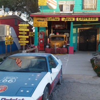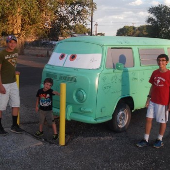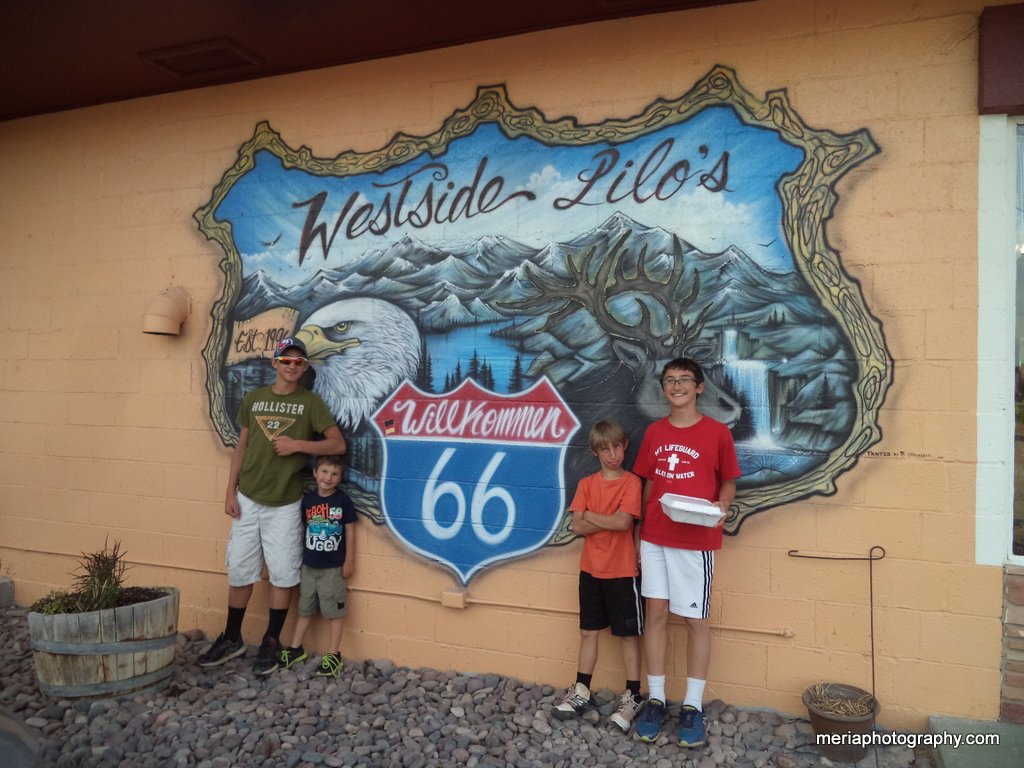 Our campsite was on Historic Route 66. It was out in the open desert, with just a few shade trees. Still hot, but they had a really nice pool. We swam for a bit and I did some laundry. We went out to eat at a local and highly recommended “Westside Lilo’s” for the food and atmosphere. The town and most of the stores and places to stay reminded us all of the movie “Cars” (in case you don’t know, the movie mostly took place in a “route 66” area). We asked our waitress about the history, so she told us a bit. We enjoyed the restaurant and the atmosphere!