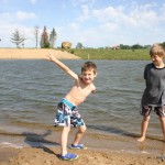 The place we were at was called the “Bamboo Ridge” KOA. It was pretty new, and not many people there. When we arrived late last night, the attendant was nice enough to give us an escort. The campground had a good size pond with a small island and veranda, and a walkway around it. There was a beach area leading into the water, so they went swimming.