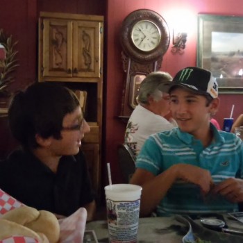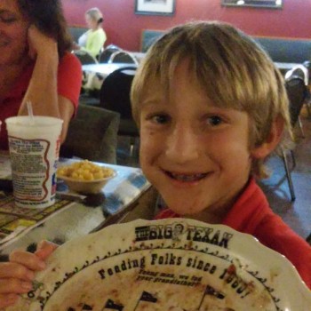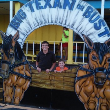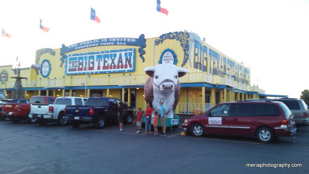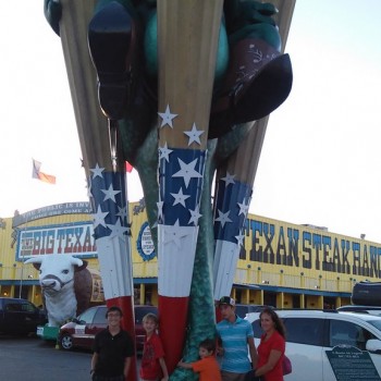 Steve had been promising all of us an awesome steak dinner in Texas pretty much since the beginning of the trip. We were psyched, and we found a campground just around the block from the steakhouse Steve had been promising our dinners at, “Big Texas Ranch Steak”. The kids hit the pool and we all got showers and were off to get our dinner.