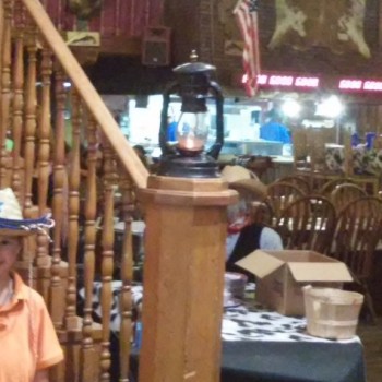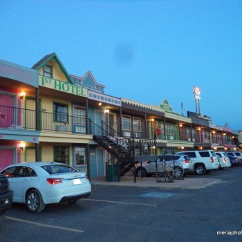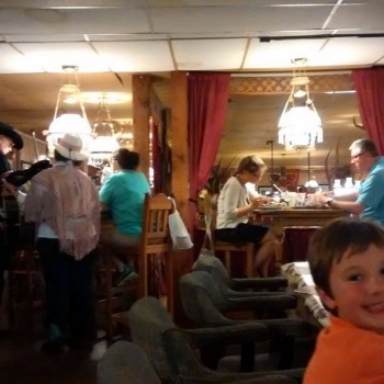 Dinner was pretty awesome. They run a contest there all the time – if you can eat their 72-ounce steak in 60 minutes, it’s free. I think someone did it while we were there – they have a special table with some digital time clocks above it, and we heard a lot of cheering at one point, but we were eating dinner in the upstairs dining area so we couldn’t see it. We did have two musicians upstairs though – two fiddle players that went to random tables, playing something that sounded old western. And Christian couldn’t do the 72 ounce, he LOVES steak and was able to eat all of his 4 oz. and left a clean plate!