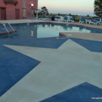 They also had their own hotel right across the parking lot from the restaurant, a “pet walk” area with a 2-person swing, and a pool in the shape of…yup, you guessed it – Texas!