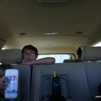 Pretty much all of the trip in the truck, we let Morgan and Tyler have the middle bench seat and Gabriel and Christian the back seats since the middle seats have more leg room. We switched for a little while. Yes, Gabriel and Christian were loving it and Tyler was sulking, but no, Gabriel doesn’t suck his thumb, he was just being silly.
