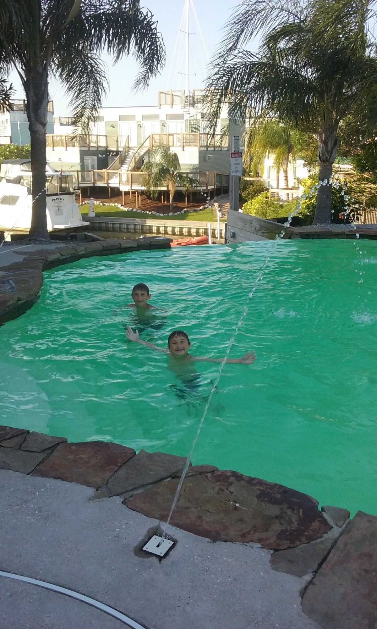 So Steve left early this morning for the conference he was speaking at, and the kids and I were on our own. After breakfast, we hit the pool until lunch. We shared mozzarella sticks and loaded fries for lunch at the “Lighthouse Restaurant” for lunch, then back to the pool and the hot tub. One thing that was kind of cool was that I was able to do some laundry while hanging in the pool and the hot tub with the kids!