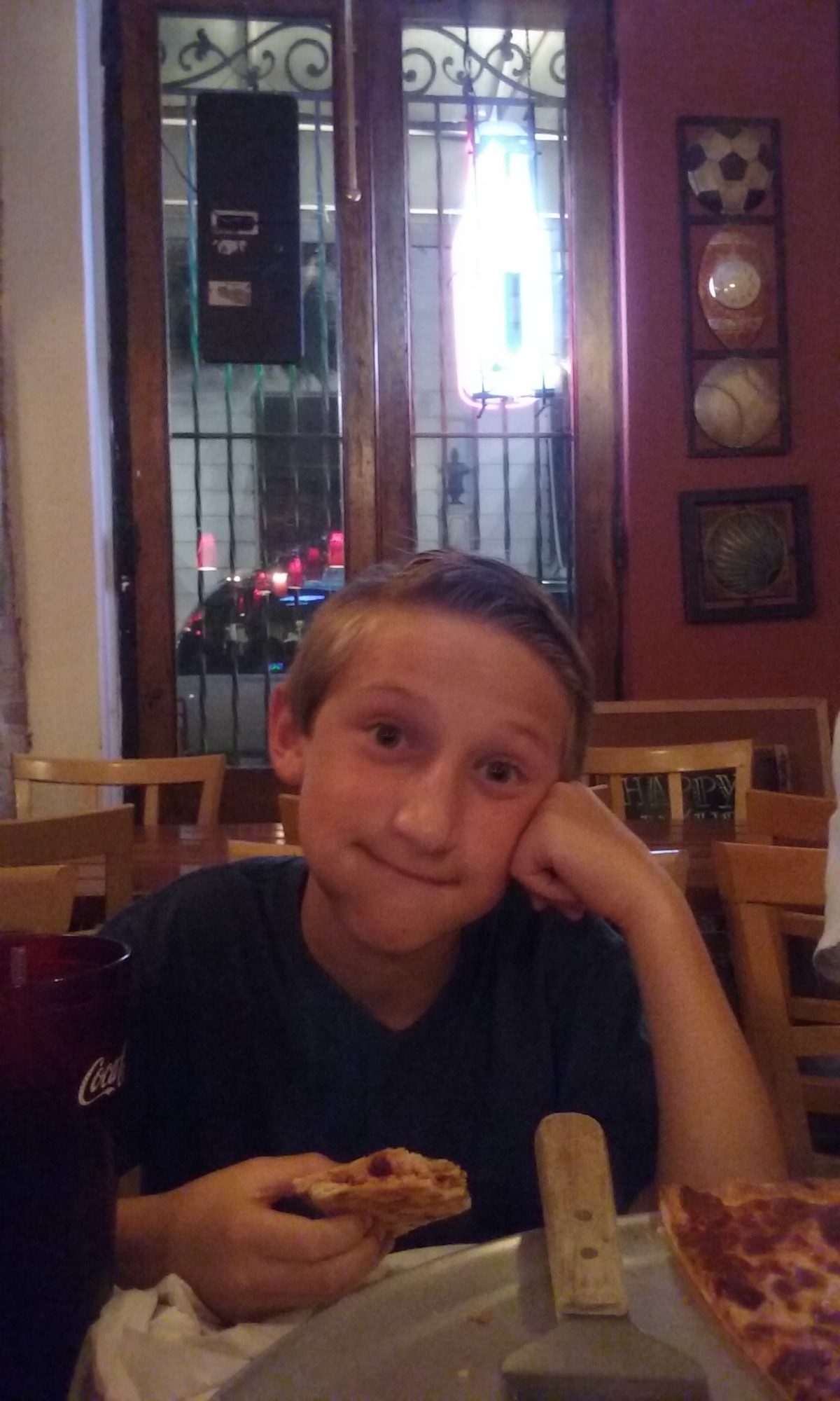 So the first pic I took, the one above, is right after we left the parking garage….and the next picture is where we ate dinner, at Big Pie Pizza just before we left the city that night.  I didn’t take any pictures between those two.  Walking through Bourbon Street with my husband and four sons was bad enough, and I’d rather just not have any photograph memories of it!